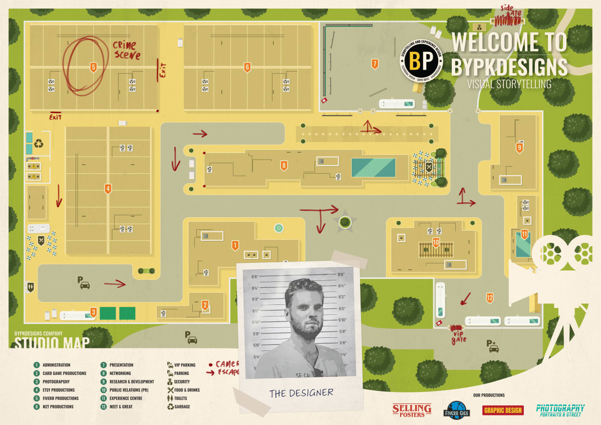 Bypkdesigns is built on two concepts that form the foundation of everything we do and deliver: storytelling and experience design. Storytelling focuses on conveying messages through graphic design. In practice, this means that each design tells its own story or, together with other elements, narrates an overarching story using unique features or a central theme. For example, the visual style of Bypkdesigns is crafted like a detective case file, with various visual elements designed as if you are studying a detective's file. Through storytelling, I aim to create designs that are unique and more vibrant than standard designs, effectively conveying the message to the viewer or user.